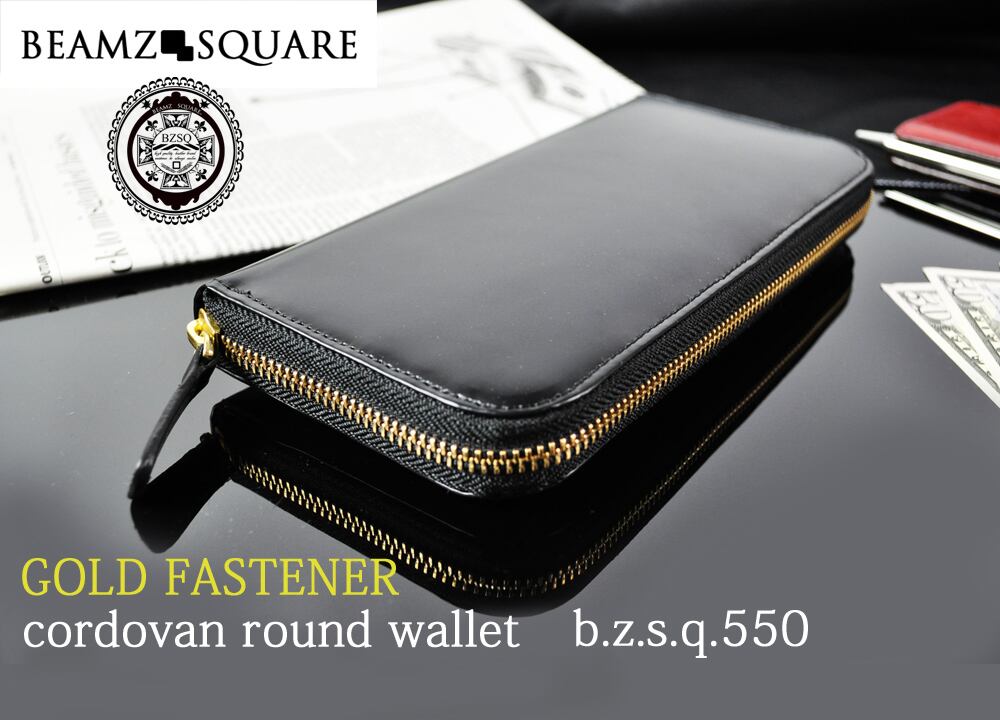 BEAMZSQUARE 馬革コードバンラウンドファスナーロングウォレットBZSQ-550 黒金のコンビカラー長財布