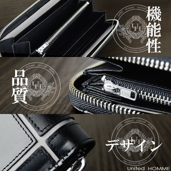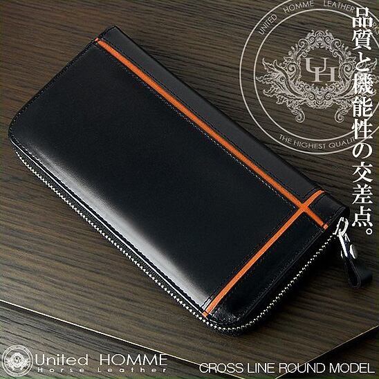 United HOMME 馬革×牛革クロスラインラウンドファスナー長財布の登場です。