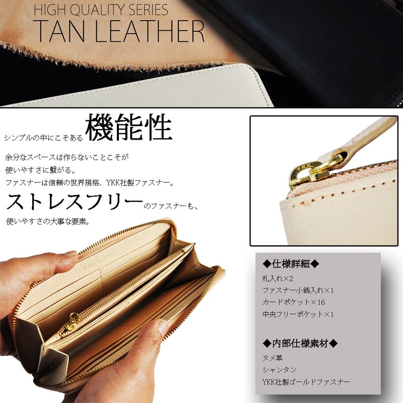BEAMZSQUARE ヌメ革ラウンドファスナー長財布(スリムスタイルver.) BS-1624NA(ベージュカラー)
