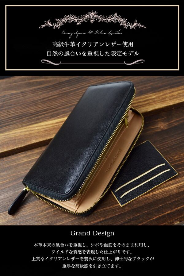 BEAMZSQUARE イタリアンレザーラウンドファスナー長財布 BS-18703 IT/BK カードケース