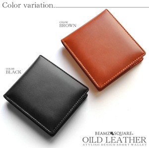 BEAMZSQUARE 銀面牛革オイルドレザーメンズ二つ折り財布 BS-1905 2色展開短財布