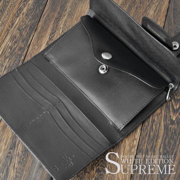 その蛇革をふんだんに使用してつくられているバイカーズウォレット、