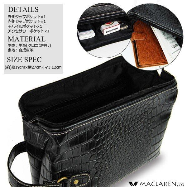 【MACLAREN.co】クロコダイル型押し牛革ダレスセカンドバッグ AN-1002K 軽量ソフトレザーポーチ