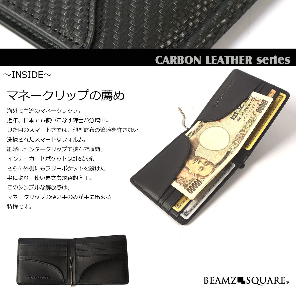 BEAMZSQUARE カーボンレザーマネークリップ BS-10310BK