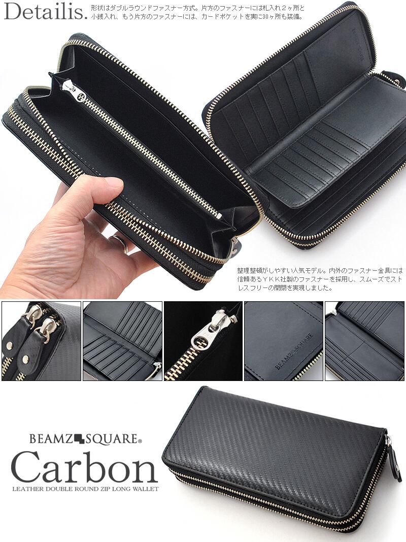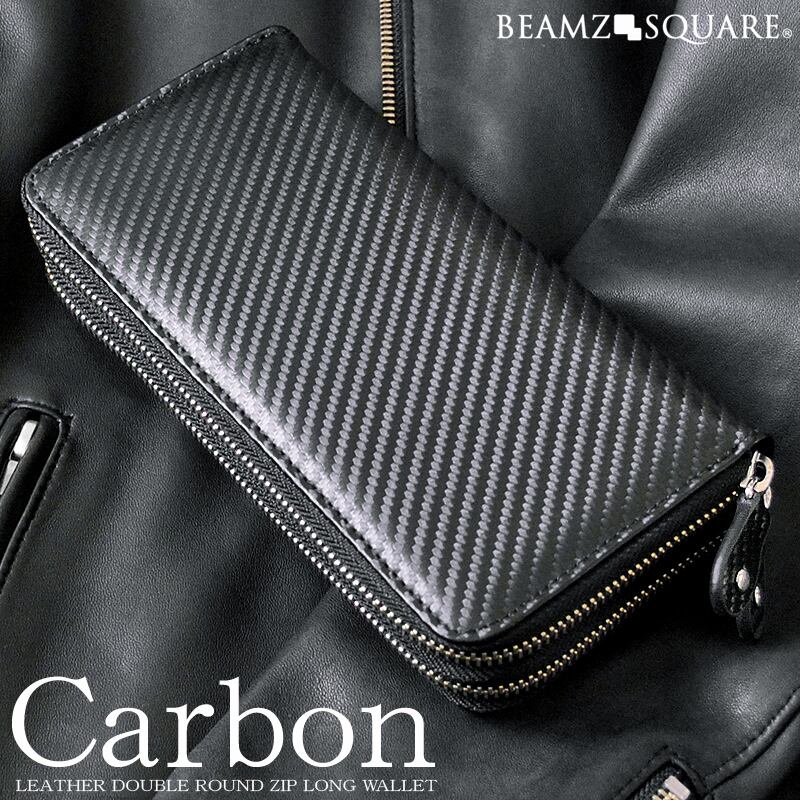 BEAMZSQUARE カーボンレザーダブルファスナー大容量長財布 BZSQ-955BK