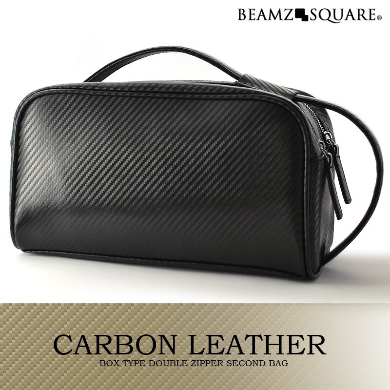 BEAMZSQUARE カーボンレザー(牛革)BOXYセカンドバッグ BS-2531BK