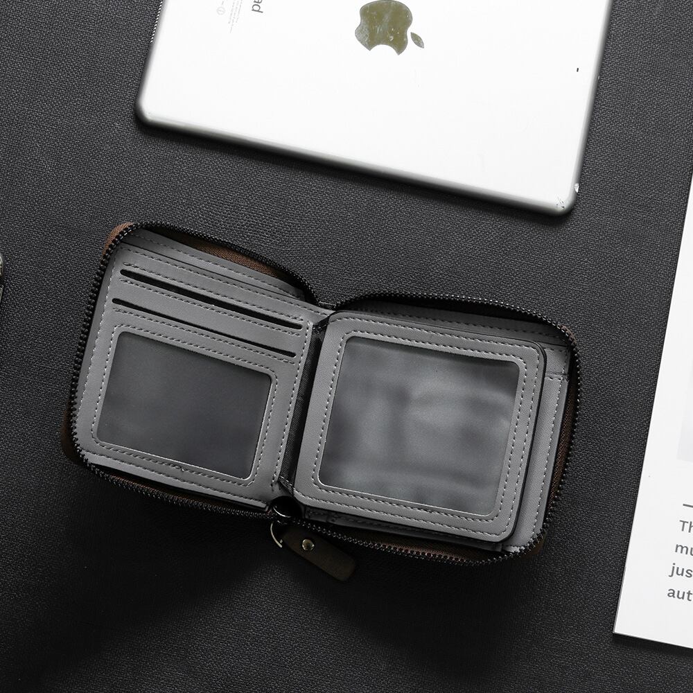 メンズ財布 二つ折り財布 ラウンドジップ PU フェイクレザー カード収納多数