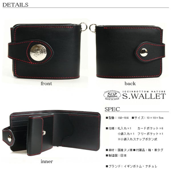 国産本革高級ヌメ革使用 二つ折り財布 日本国内限定モデル 2WAYショート IGO-104 メンズ財布