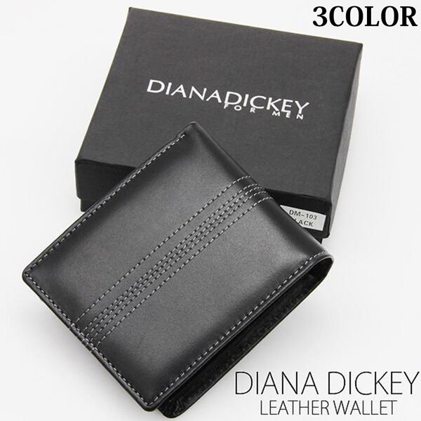 本革使用 二つ折り財布 ダイアナディッキー レザーステッチ 短財布 DM-103 メンズ財布