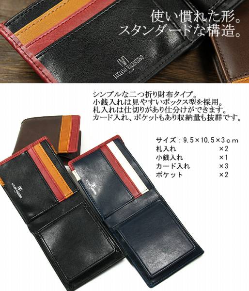 トリコロールカラー折財布 短財布 ウォレット LUV-1012 メンズ財布