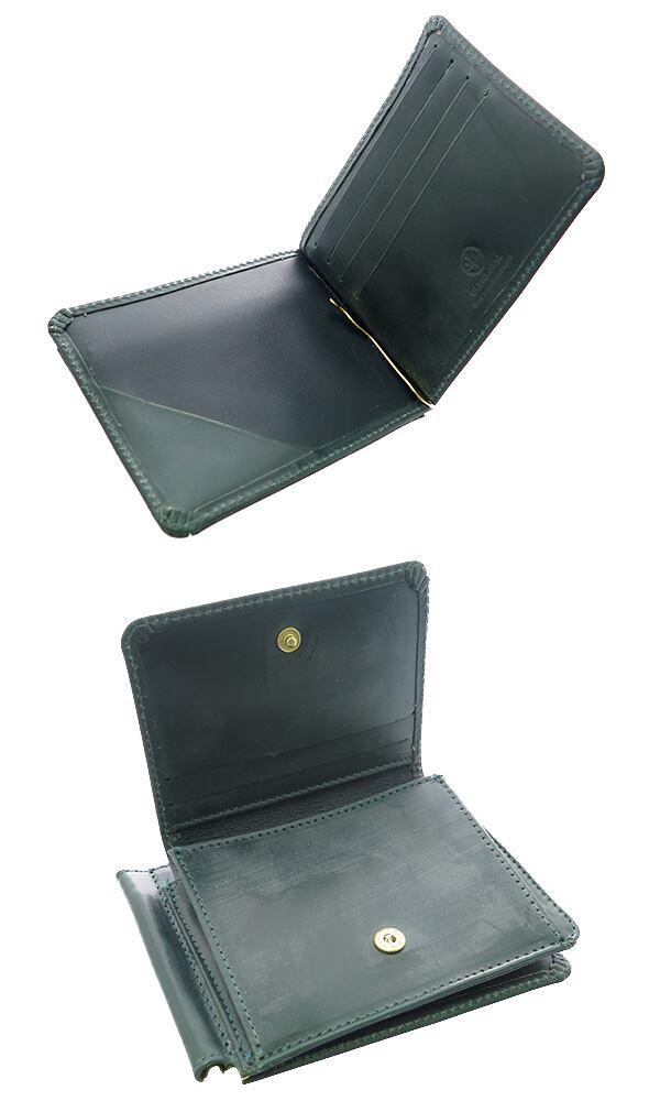 マネークリップ、ポケット×7、コイン入れ:あり、カラー:BOTTLE GREEN※ブライドルレザー製品には、革の表面に白い粉が吹いたかに見えるものがあります。これはブルームと呼ばれ、革に擦り込まれたワックスが浮き上がったものです。(ただし個体差などにより、ブルームが浮き出ていない製品も存在します)乾いた布で拭く、あるいはブラッシングで簡単に落とすことができます。