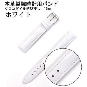 【腕時計用ベルト2本組】本革バンド クロコダイル柄型押し16mmホワイト