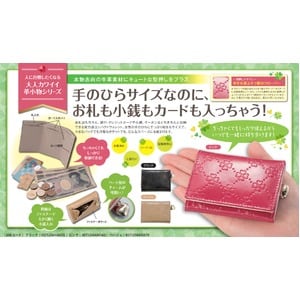 女性の手のひらにすっぽり収まるサイズなのに、お札はもちろん、銀行・クレジットカードや小銭、クーポンなどもきちんと収納できる実力派。